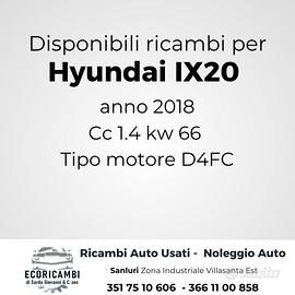 vendiamo ricambi Hyundai ix20 anno 2018 cilindrata 1.4 kW 66 tipo motore D4FC