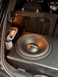 IMPIANTO AUDIO PRIDE CAR AUDIO x4 woofer Pride Diamond v2 (20cm) x4 driver Pride H2 x1 subwoofer Pride junio pro (38cm) x4 griglie Pride copri woofer x1 cassone pelle subwoofer (baule fiat 500) x2 pannelli abarth pelle + tasche pelle x1 batteria gel 100ah x1 ampli Stetsom 1200 (1ohm) x1 ampli Soundigital 1600.1D (10hm) x1 ampli Soundigital 400.4 x1 processore Stetsom STX2436BT x1 centralina segnale Audison 2000 EURO SENZA MONTAGGIO. 2500 EURO MONTATO. VENDO TUTTO IN BLOCCO NON SMEMBRO.
