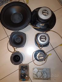 impianto stereo per auto composto da coppia di tweeter, midrange e woofer da 200watt con relativi crossover dedicati. Ottimi per costruire delle casse per la casa