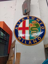 Insegna Alfa Romeo Milano in metallo verniciatura smaltata ottimo stato