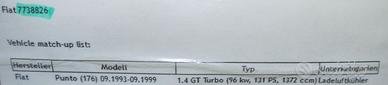 Scambiatore di calore per Fiat Punto GT anno 1994 codice FIAT 7738826
