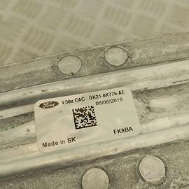 Intercooler originale smontato da veicolo Ford Transit Custom, in ottimo stato, completo e perfettamente funzionante. Il componente è identificato dal codice stampato sulla vaschetta: GK21-6K775-AE. Struttura in alluminio con vaschette laterali in plastica nera, rete centrale a canali orizzontali e alette saldate ad alta densità. Gli attacchi laterali con innesto rapido sono integri e puliti. Questo intercooler è progettato per raffreddare l’aria compressa dal turbocompressore prima dell’ingresso nel collettore, migliorando l’efficienza termica, la potenza e riducendo il consumo di carburante. Compatibile con le motorizzazioni 2.0 EcoBlue e 2.0 EcoBlue mHEV Ford.Ricambio noto anche come: intercooler Ford Transit, radiatore aria aspirazione Tourneo Custom, intercooler aria compressa Ford V363, scambiatore aria turbo Transit Custom, radiatore aria sovralimentazione Ford, intercooler aria raffreddata Transit 2.0 EcoBlue e a livello internazionale: charge air cooler Ford Transit, turbo intercooler Ford Custom, air to air intercooler Transit V363