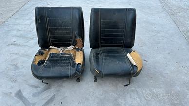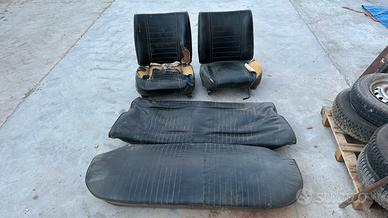 Vendesi set completo di sedili originali per Fiat 128 (Berlina/Rally). Il set comprende i due sedili anteriori e la panca posteriore completa (seduta e schienale). I sedili presentano il classico rivestimento in vinile/finta pelle nera con cuciture orizzontali, tipico dell'epoca. Stato dell'oggetto: • Struttura: Telai integri e solidi, ideali come base per un restauro filologico. • Rivestimento: Come visibile in foto, il materiale presenta strappi e segni del tempo, specialmente sulla seduta del guidatore e sugli angoli. • Imbottitura: Da rivedere in alcuni punti dove la gommapiuma risulta esposta o usurata. Ottima opportunità per chi sta effettuando un restauro totale e cerca componenti originali difficili da reperire, da poter rifoderare mantenendo l'autenticità del veicolo.