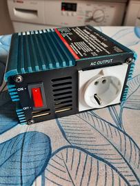Vendo inverter 150W (picco 300W) per camper, nautica o auto. Ideale per far funzionare frigoriferi, tv , etc... Ingresso: Attacco spina per presa accendisigari auto. Uscita: Presa tripolare, tipo "schuco". Usato 2 volte, come nuovo.