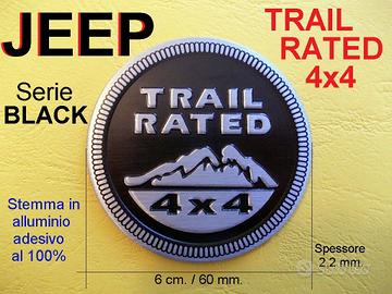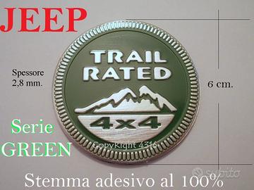 Vendo N° 1 stemma JEEP TRAIL RATED 4X4 in alluminio, adesivo al 100%, disponibile in 3 diversi colori: VERDE - ROSSO – NERO (tutti come da foto).