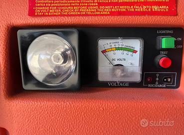 Indicatore di Carica: Voltmetro analogico frontale per monitorare lo stato della batteria interna.