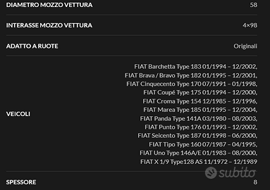Kit 2 distanziali 8mm attacco Fiat 4 fori