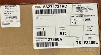 Vendo kit accessori per verricello originale Jeep (codice: OEM68271721AC), nuovo e mai utilizzato. Il contenuto è stato tirato fuori dalla borsa solo per fare la foto, mai usato.