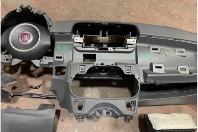 NB IL CRUSCOTTO SULLA PARTE DESTRA E' LEGGERMENTE SEGNATO E CREPATO COME VISIBILE IN FOTO - Kit airbag completo per Fiat 500 compatibile dall'anno 2007 al 2014 - kit composto da airbag volante, airbag ginocchia, cruscotto co n airbag destro e cinture con pretenzionatore
