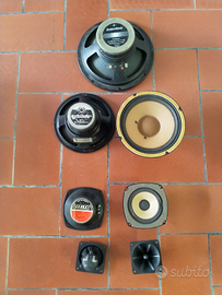 Vendesi altoparlanti vintage Nello specifico: 2 altoparlanti GBC da 60w x 130mm 2 audio design da 80w 2 tweeter Motorola a cono 1 subwoofer electronic Melody doppio canale 80w + 80w 2 tweeter trevi da 60w con supporto esterno da cappelliera