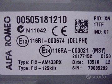 CODICE CENTRALINA BODY COMPUTER: 00505181210