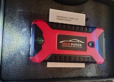 Kit avviatore di emergenza multifunzione portatile (jump starter).È un dispositivo progettato per avviare veicoli con batteria scarica e funge anche da power bank e torcia.