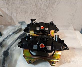 Pinze 305 (seminuove)Staffe pastiglie E Tubi Bosch. Tutto nuovo tranne le pinze che sono cmq seminuove piccolissimo segni dovuto allo smontaggio derivano da una Giulia con 7000km che ha fatto upgrade a 330.... Quindi tubi nuovi pastiglie nuove e staffe in c45 zincate a freddo del valore di 200€ nuove mai montate massima serietà