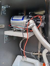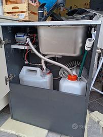 Kit camperizzazione auto o furgone composta da 2 mobili, uno lavello, miscelatore estraibile , pompa Shurflo 7L(pagata 100 euro), doccino con 2m di tubo, tanica acque pulite 20 L e tanica recupero 15L, la pompa funziona con la presa accendisigari dell'auto, misure 40x60 H77, e altro mobile con 2 cassetti misure 53x47 H87. solo ritiro non spedisco. astenersi perditempo o (tipo gente che me lo tiene bloccato per un mese e poi mi dice non mi serve più). non seguo code. grazie a chi ha compreso le ultime righe.