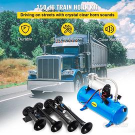 Kit di Clacson ad Aria Compressa 150dB 4 Pezzi di Trombe Compressore 12V per Auto Camion Furgone Barche, Kit di Trombe Compressore ad Aria con Serbatoio 6L Set di 4 Trombe per Veicoli 150dB 12V Clacson ad Aria da 150 dB: i clacson per veicolo possono produrre circa 150 decibel di suono. 4 clacson in acciaio inossidabile di diverse dimensioni emettono un avviso molto forte, udibile a diversi chilometri di distanza. È il modo più efficace e sicuro.