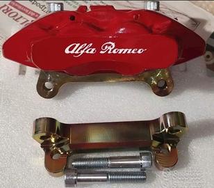 Kit freni maggiorato Alfa Romeo Giulietta, (Jeep Renegade, Fiat 500 X), 330x28, completo di coppia di pinze Brembo rosse nuove con scritta Alfa Romeo bianca, pastiglie nuove originali Alfa Romeo, tubi in treccia Hel performance, coppia di staffe in acciaio c45 zincato con viteria zincata 10.9, dischi lisci Brembo, tutto nuovo, possibilità di fornire pinze di altri colori su richiesta con sovrapprezzo. (Disponibilità di dischi Brembo o marche a piacere, forati, baffati e misti con sovrapprezzo). Possibilità di fornire anche kit 305x28.