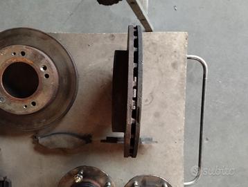 Vendo kit impianto frenante anteriore completo di disco ventilato diam.285 mm sp.24 mm senza gradino, foro mozzo 95 mm, 5 fori su una circonferenza di diam. 140 mm. Pastiglie con ferodo sp.1 cm e mozzo centrale con dadi ciechi, pinza freno con pompante centrale. Kit in origine montato nuovo su avantreno di Kia Sportage anno 1997 poco prima che la macchina venisse demolita, percorsi pochi km. Euro 200,00. Contatto 330895407