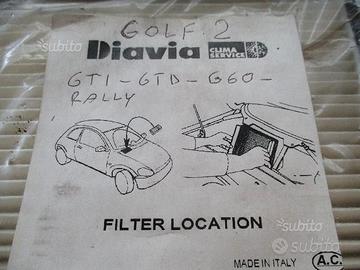 N. 2 Kit modifica Filtro marca DIAVIA aspirazione per aria interna VW Golf 2 - GTI/GTD/G60/Rally