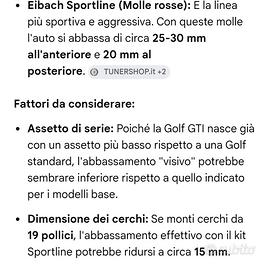 Vendo kit completo Eibach assetto sportivo per cambio auto.