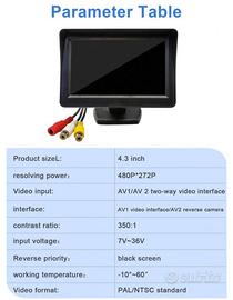 Kit parcheggio 2-in-1, telecamera di retromarcia HD impermeabile con visione notturna e display LCD digitale a colori ad alta definizione da 4,3", monitor universale per retrovisione auto.