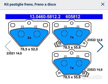 Pastiglie freno ATE. Numero articolo: 13.0460-5812.2 Larghezza: 78,5mm Altezza 1: 52 mm Altezza 2: 55,6mm Spessore: 14mm
