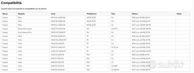 Kit pastiglie Toyota Yaris anno 99/03 nuove mai usate Vedi compatibilità nelle foto allegate 15 euro