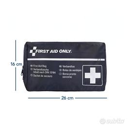 Kit pronto soccorso per auto/moto/casa conforme alla norma DIN 13164, completo e compatto. Ideale per affrontare piccole emergenze in viaggio o a casa. Include tutto il necessario, già pronto all’uso, in pratica custodia con zip.
