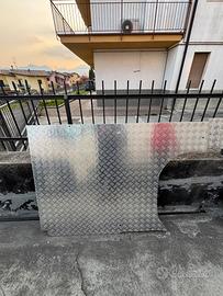 Kit completo di laterale e pianale in alluminio mandorlato tagliato su misura per Fiat Ducato del 2010 (L2). Le codizioni sono ottime, il pianale si presenta in quel modo perche non è ancora stato lavato. Prezzo trattabile.
