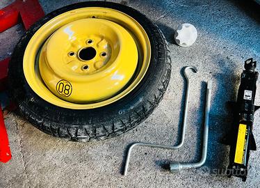 Vendo kit ruota di scorta Toyota ( Yaris e similari ) composto da ruotino Dunlop semi nuovo, ferma ruota, crick e leva solleva auto, chiave dadi ruote euro 50