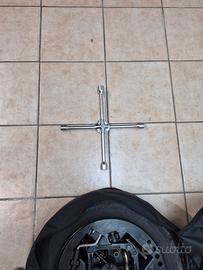 Vendo ruotino di scorta completo di cestello completo di crik, chiave, gancio traino e cacciavite e do insieme anche la chiave a croce per qualsiasi tipo di diametro chiave avete montato , viene venduto a oltre 150 euro sul web senza chiave a croce. . . .comodo da mettere nel baule con impianto a GPL per non avere rumori dal baule. . . .tutto perfetto e credo mai usato. . . grazie a tutti