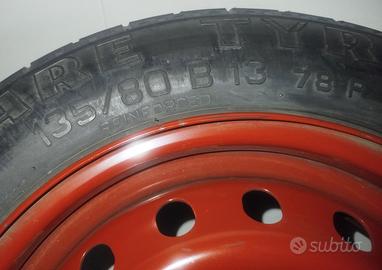Come da titolo, vendo kit ruota ruotino di scorta per vetture gruppo Fiat, Lancia misura 135 80 r13 con attacco 4x98, ottimo per vetture gpl in quanto essendo r13 occupa meno spazio nel baule.
