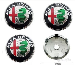 KIT FREGI STEMMI LOGHI ALFA ROMEO SILVER: ANTERIORE+POSTERIORE+VOLANTE+4 TAPPI RUOTA