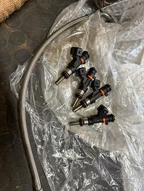 Vendo kit potenziamento per 1400 tjet fiat abarth, collettore SS, turbina 1446, downpipe scatalizzato, iniettori maggiorati e tubazione olio turbina (questa presenta un leggero danno dovuto a sfregamento sul blocco ma integra). Kit comprato usato per la mia macchina ma poi mai montato. Se avete domande chiedete pure, formula visto e piaciuto, non accetto reclami dopo l’acquisto se una parte non vi va bene!