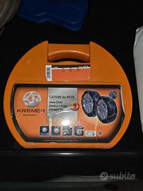 Set di catene da neve Kremer, omologate per la circolazione mai usate. Catene da Neve 9 mm Gruppo 6.5 Omologazioni: ONorm 5117, TUV, GS Misure: 175/75-R14 185/60-R15 175/60-R16 185/70-R14 195/55-R15 205/45-R16 205/55-R14 205/50-R15 215/40-R16