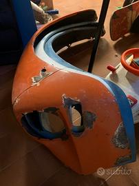 Portiera e tre parafanghi anteriori sx. I parafanghi richiedono qualche lavoro di stuccatura ma sono strutturalmente sani. É presente anche un pannello porta nero.