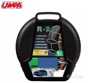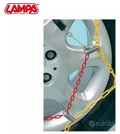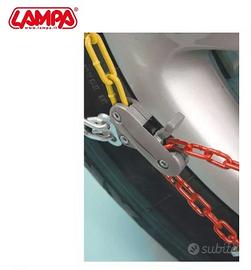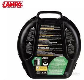 Catene da neve maglia compatta (Sezione a “D”), 9 mm di ingombro interno, con auto-tensionamento, battistrada a rombo in acciaio cementato speciale., maglie corte con sezione a “D” utilizzabili da entrambe le parti. Cavo interno flessibile per un montaggio facile senza sollevare e spostare la vettura.