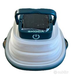 Il prodotto Škoda è una lampada solare da esterno pieghevole, progettata per offrire illuminazione versatile durante le attività all'aperto. Dotata di un pannello solare integrato, la lampada dispone di tre livelli di luminosità regolabili tramite controllo touch. La struttura include un cono in silicone pieghevole, una maniglia rimovibile e anelli laterali per facilitarne l'aggancio o il trasporto. Può essere ricaricata sia tramite il pannello solare che con un cavo USB-C standard, incluso nella confezione insieme al manuale d'uso. Resistente agli schizzi d'acqua e alla pioggia, la lampada è ideale per campeggio, escursioni o altre attività all'aperto. Le dimensioni da chiusa sono 140 x 125 x 25 mm, mentre da aperta raggiunge un'altezza di 100 mm, con un peso di 114 g. L'autonomia varia in base al livello di luminosità selezionato: fino a 2,5 ore alla massima intensità, 5 ore a intensità media e 20 ore alla minima intensità. La potenza del LED è di 1,2W.