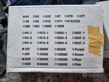 Vendo causa inutilizzo: - coppia di lampadine H1 da 35W ciascuna allo Xenon da 6000 K - coppia di lampadine H7 da 35W ciascuna allo Xenon da 6000 K - coppia di lampadine H7 da 80W Alogene da 5000 K causa inutilizzo Possibilità di spedizione.