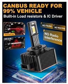★【LUMINOSITÀ DELL'800%】Lampadine D1R D1S LED offrono una luminosità superiore dell'800% rispetto alle lampadine HID OEM e una temperatura di colore bianco di 6500K, chip potenziati da 120W 30000LM, garantendo una visibilità maggiore e più ampia durante la guida notturna. ★【DURATA DI VITA DI 60000 ORE】Lampadine D1S LED sono progettate con corpo interamente in alluminio, doppio tubo in rame e basamento in rame per un raffreddamento rapido, ventola di raffreddamento silenziosa ad alta velocità integrata da 16000 giri/min che allontana efficacemente il calore dai chip LED, garantendo una durata di vita più lunga fino a 60000 ore. ★【ACCENSIONE IN 0,01 SECONDI】Lampadina per fari LED D1R incorpora un innovativo design a corrente diretta, raggiunge un tempo di accensione di soli 0,01 secondi, garantendo che la luce raggiunga la massima luminosità praticamente all'istante dopo l'accensione, eliminando qualsiasi ritardo percepibile o periodo di riscaldamento e fornendo un'illuminazione immediata e a piena intensità nel momento in cui la lampadina viene accesa. ★【99% SENZA ERRORI CANBUS】Lampadine LED D1S canbus aggiornate con driver IC intelligente integrato, compatibili con il 99% dei sistemi informatici dei veicoli senza errori o sfarfallii, senza interferenze elettromagnetiche. La scelta migliore per passare dalle lampadine Xenon HID alle lampadine D1R 6500K LED. ★【SOLO SOSTITUZIONE PER HID】Lampadina LED D1S 30000LM si collega solo al gruppo ottico con lampadina HID. Non sostituisce il gruppo LED/alogeno. Verificare la compatibilità del veicolo prima dell'acquisto. Design 1:1, facile installazione senza cavi di prolunga o modifiche al cablaggio, nessun driver esterno, plug and play, sostituisce perfettamente le lampadine HID OEM.