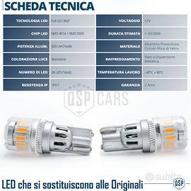 2 Lampadine Led T10 - WY5W Arancioni Professionali |Luce Potente e "Diffusa" - CANbus NO Errori - Plug & Play | 500LUMEN Totali Prodotto a Qualità, Durata e Potenza Garantita - Illuminazione Potente e Diffusa - Look Rinnovato Arancione - No Errori | CANbus - Ricambio Perfetto | Plug & Play UTILIZZI SUGGERITI: - Frecce, indicatori di direzione INFO: - LUCE DIFFUSA: La Copertura Led Opaca, con trasparenza all' 85%, offre unaLuce Trasmessa e Diffusa, generando un'illuminazione senza pari, dieci voltepiù potente della classica lampadina alogena di serie. Questo aumenterà lavisibilità dell'indicatore di direzione, rendendo la guida più sicura. COMPATIBILITÀ: - Vetture Con Lampada Alogena T10 - W5W - Montaggio Plug & Play SCHEDA TECNICA: - Tipo: T10 - W5W - Colore: Arancione - Materiale: Alluminio + Circuiti in Fibra di vetro - N° Led: 13 LED con Cover Opaca (ognuna) - Tipo Led: 12 LED SMD 4014 + 1 LED SMD 3030 - Potenza: 250 Lumen - 5W (ognuna) - Voltaggio: 12V - Canbus: SI - Lunghezza: 30mm - Diametro Ø: 12mm - Tecnologia: FULL LED - Resistenza a polveri ed Acqua: IP67 - Temperatura di Lavoro: -40C° +85C° - Applicazione: Ricambio Perfetto - Confezione o Scatolo: Originale - Condizioni: Nuovo PER INFO CONTATTARE AL 3927091031 ANCHE LINEA WhatsApp OPPURE VIA E-MAIL: rtautoitalia2018@libero.it CONSEGNA: - Effettuiamo Spedizioni 24-48H in TUTTA ITALIA - Ritiro in Sede con Possibilità di Visionare il Prodotto - Vendiamo solo Articoli Nuovi PAGAMENTI: - PayPal - Con Carta - Bonifico Bancario - Alla Consegna con Contrassegno