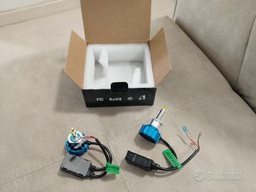 Lampade LED per autovettura attacco H1 e spinette universali. Altissima luminosità e luce di gradazione 6000K con emettitore a 360° da 5mm per una vione ampia, nitida ed esente da zone d'ombra. Costruite in metallo. Tecnologia CANBUS che evita accensione di spie di errore sul cruscotto. Nuove, mai montate e maneggiate con cura con guanti in cotone solamente per fare le foto