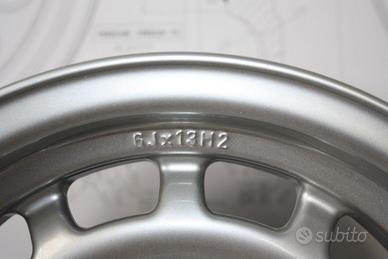 4 (quattro) CERCHI LEGA 6X13 CAMPAGNOLO REPLICA LANCIA FULVIA COUPE PRIMA SERIE SILVER
