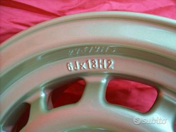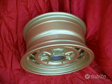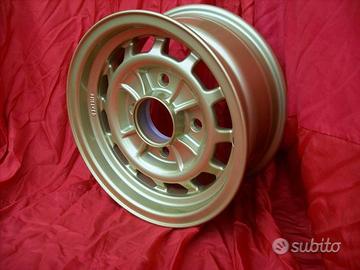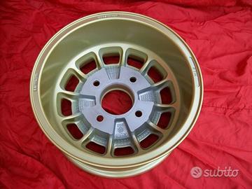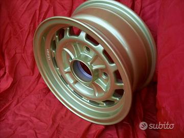 N. 4 cerchi in lega nuovi,in alluminio,di attuale produzione italiana,per gomme tubeless,campagnolo style per lancia fulvia hf 1600,colore oro gold metallizzato,misura 6x13,attacco (pcd) 4x130,et 15,foro centrale 85,4 completi di dadi di fissaggio.Per il montaggio sono consigliati i passaruota,Utilizzabili su lancia fulvia 1,2 1,3,rallye,e derivate zagato.Logo centrale campagnolo optional.Euro 1200 + spedizione.whells rims felgen llantas jantes.