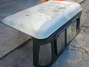 Tetto corto pickup per Land rover defender versioni 90 e 110 tutti gli anni dall'1984 fino al 2016 in buone condizioni.Presenta solo due fori come si evince dalle foto di 3mm ai due lati facilmente recuperabili.Per il resto si presenta veramente in ottime condizioni.Sono comprese le sue staffe,ma non il cielo e i rivestimenti interni che comunque sono acquistabili e fornibili a parte.Posso consegnare nel raggio di 200km e in mancanza posso spedire con BRT al costo di 120e in tutta Italia.Per info 3880000100 Luca