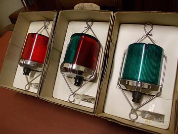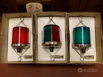 Vendo lanterne/fari di navigazione Hellamarine,predisposte anche per il fissaggio su base fissa.Dimensioni:altezza,escluso portalampada,cm 12,5-diametro della base cm 10,5.Prezzo:euro -50-c/una