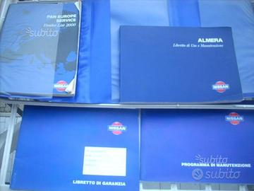 Kit in custodia plastica originale NISSAN ALMERA 2000 con (1) Libretto uso e manutenzione (2) Programma di manutenzione (3) Libretto di garanzia, (4) lista europe service OTTIMO STATO