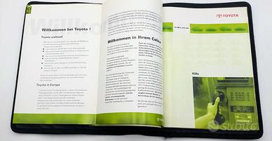 Libretto di servizio in custodia originale in pelle Toyota in lingua tedesca piu' manuale-catalogo centri assistenza in Europa anno 2000. In buone condizioni generali, spedizione accurata.