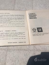 Istruzioni uso e manutenzione OPEL KADET/ASCONA/MANTA/REKORD anno 1979