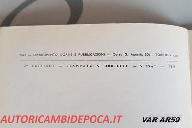 Codice ricambio: VAR AR59 Libretto Uso e Manutenzione per Fiat autovettura AR 59, 2° edizione, pubblicazione V-1961, integro, originale d'epoca in perfette condizioni.