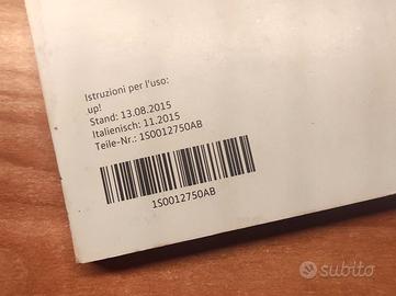 Libretto uso e manutenzione originale Volkswagen Up! stampato nel 2015, versione in commercio negli anni 2012, 2013, 2014, 2015, 2016